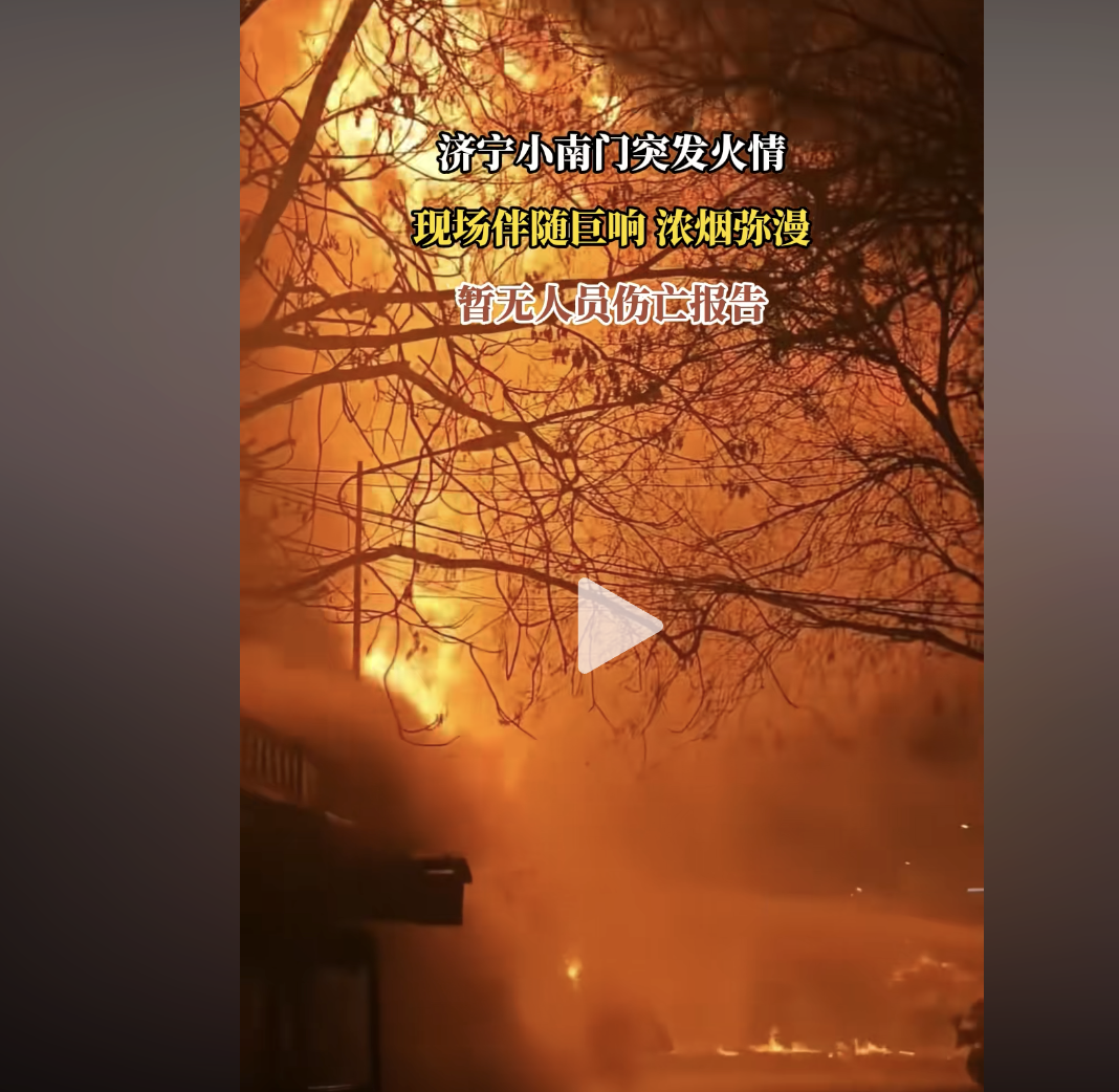大陸社交媒體上流傳的多條影片顯示,事故現場為山東濟寧小南門。當地網民稱,4日晚上有液化氣店發生爆炸,波及周邊的多家店舖,發生連環爆炸。