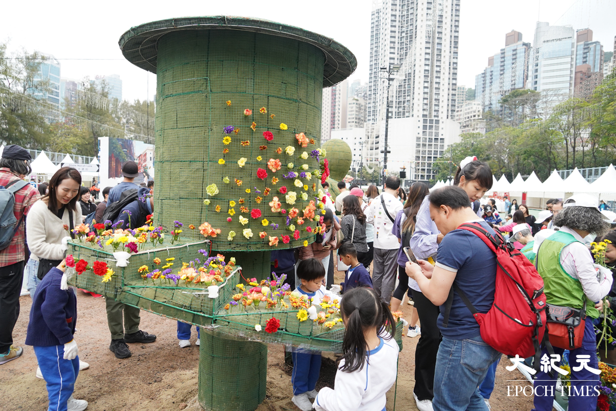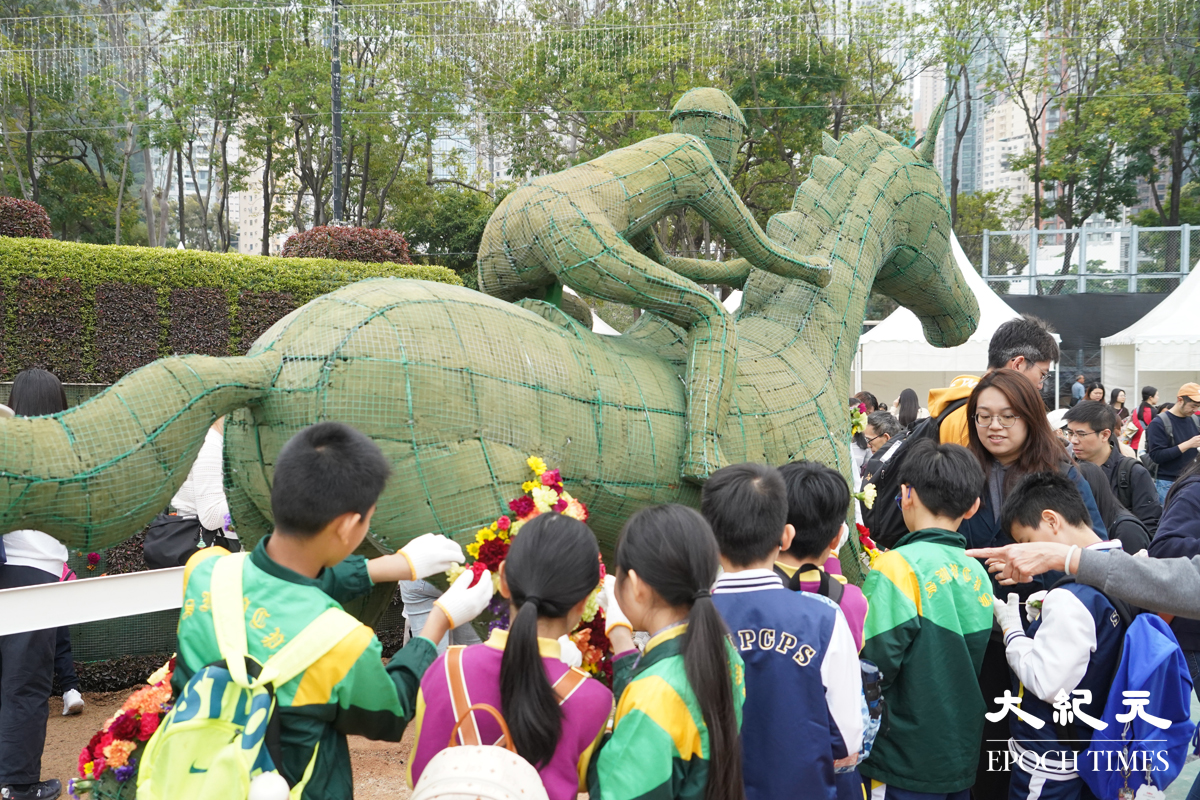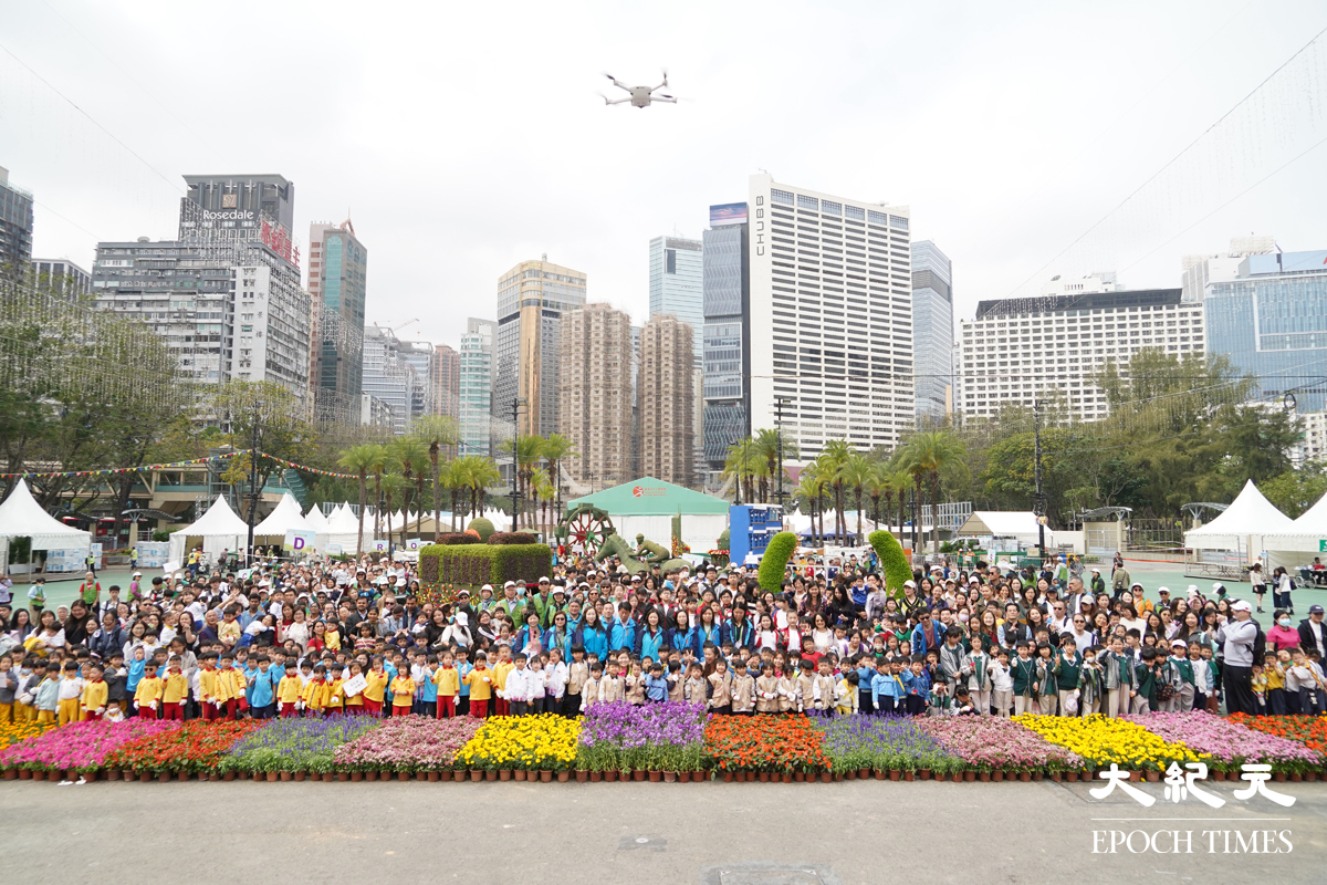 「2026年香港花卉展覽」本月20日將於維多利亞公園舉行,今日(7日)率先舉辦「賽馬會學童鑲嵌花壇」活動,約1,100名學童在綠化義工指導下,動用多達4.4萬株植物拼湊成大型園景,為即將揭幕的展覽作準備。