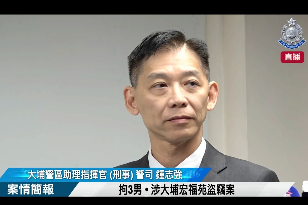 大埔宏福苑大火後,僅未受大火波及的宏志閣居民,曾獲安排返回家中一次,收拾個人物品,但是其餘7座大廈的居民,仍未獲准返回單位。大埔警區助理指揮官(刑事)警司鍾志強昨日交代案情時表示,周四(5日)下午約1時30分,警方發現3名男工人在宏泰閣一個單位進行加固工程期間形跡可疑,懷疑盜竊。