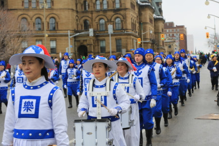 周六(3月7日),聖博德節遊行活動自 2019 年以來首次重返加拿大首都。由渥太華、滿地可兩地法輪功學員組成的天國樂團也亮相遊行隊伍。