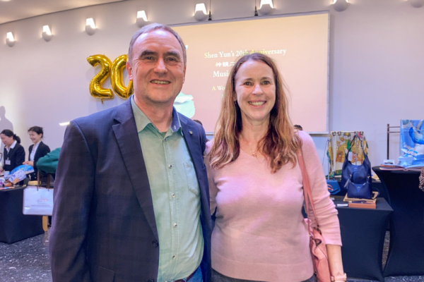 他表示,前來看神韻讓他感到「非常興奮」;因為他和太太第一次聽說神韻時,是在台北恰逢神韻藝術團的演出,但他們當時有其它安排因此無法成行,「後來我們想,有機會一定要在歐洲看看。現在終於看到了,真的非常精彩。」