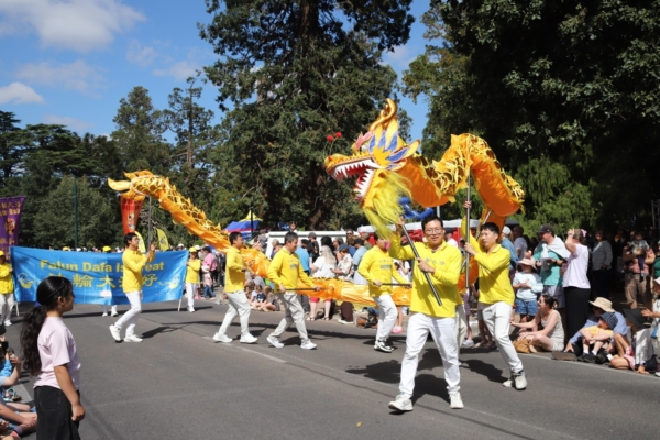 在去年節慶大遊行中首次亮相的法輪功團體引起熱烈反響,今年再度受邀參加該活動。遊行隊伍中,法輪功功法演示隊、腰鼓隊、舞龍隊和仙女隊為觀眾帶來展現東方神傳文化的表演。活動主持人及民眾紛紛表示,大法「真、善、忍」普世價值彌足珍貴,對當今社會尤為重要。