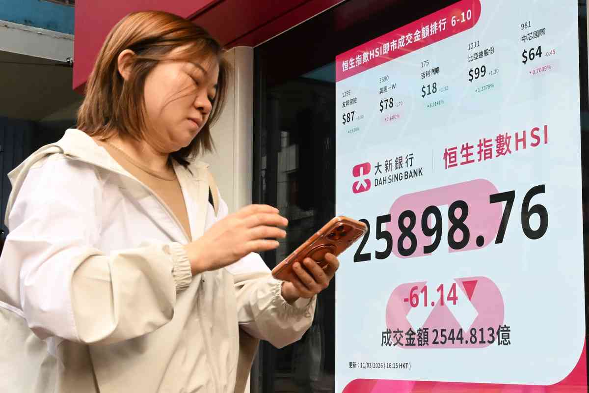 美股昨晚大致上持平,日韓股今(11日)均升1.4%,台股抽高逾4%,港股倒跌低收。恒指今早高開152點,中段起轉弱,午市曾低見下挫140點,收市報25,898點,跌61點(即微降0.2%),成交額2,545億。國指跌0.1%、科指亦走低0.1%。