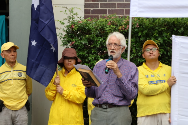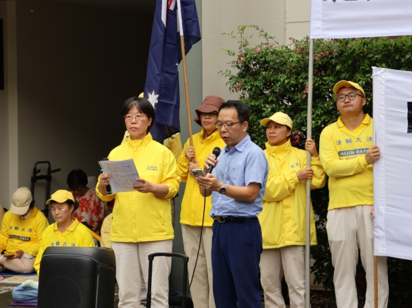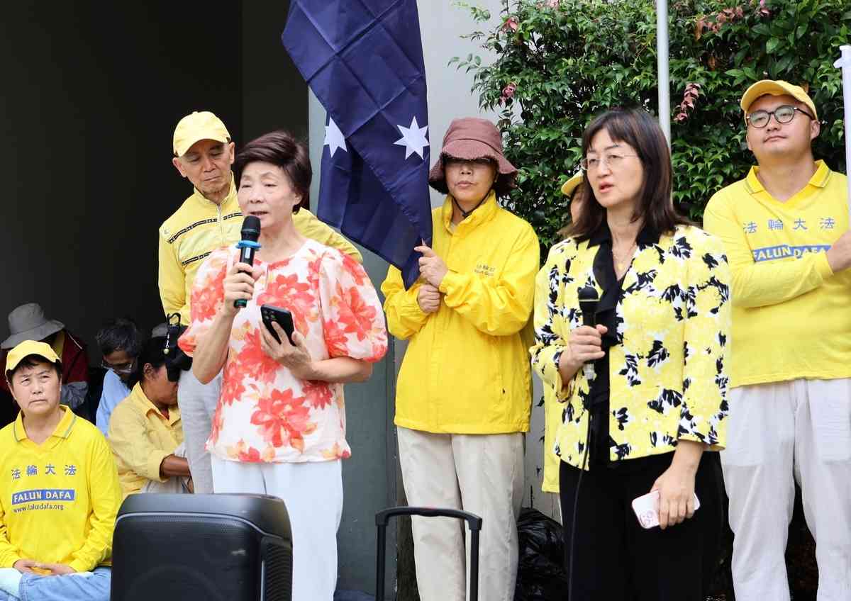 芮女士在集會現場披露了一段令人心碎的家史:作為澳洲公民,她的母親在中國因修煉法輪功被迫害致死,而當時悉尼中領館竟拒發簽證,致使她無法回國參加葬禮。如今,她年逾九旬的父親獨自在上海生活,孤苦伶仃。