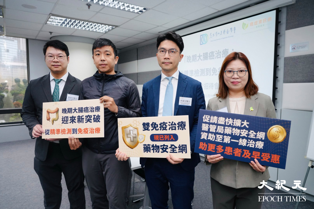 癌症資訊網慈善基金及香港消化道腫瘤學會今日(11日)舉行記者會,表示在「大腸癌關注月」期間舉辦主題為「晚期大腸癌治療:從精準檢測到免疫突破」的活動,介紹晚期大腸癌免疫治療的最新發展。主辦方指出,近年免疫治療為部份晚期大腸癌患者帶來新的治療選擇,但目前香港公立醫院的資助只限於較後期使用,呼籲政府及醫院管理局擴大藥物安全網資助範圍至第一線治療。