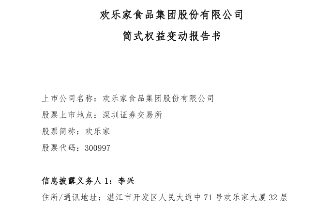 「歡樂家」3月10日在《簡式權益變動報告書》中透露:「李興先生根據自身資金需要通過詢價轉讓方式轉讓上市公司股份10,936,836股。」而「訊息披露義務人李興先生現任歡樂家董事長」。