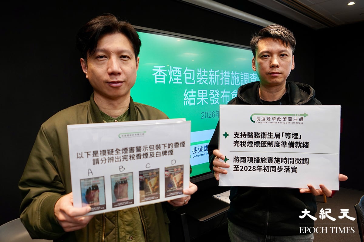 政府擬推行兩項煙草包裝新措施,包括「全煙害警示包裝」要求所有煙草產品外觀劃一並移除品牌獨有防偽特徵,以及「完稅煙標籤制度」要求每包在港出售香煙貼上特定標籤證明已納稅,標籤設數碼防偽特徵供執法人員及零售商掃瞄二維碼驗證,但不包括消費者。長遠煙草政策關注組今日(12日)發布調查結果,指在全煙害警示包裝下,近九成吸煙者無法正確分辨完稅煙與白牌煙,建議開放標籤掃描功能予公眾,並延期兩措施至2028年初同步實施。