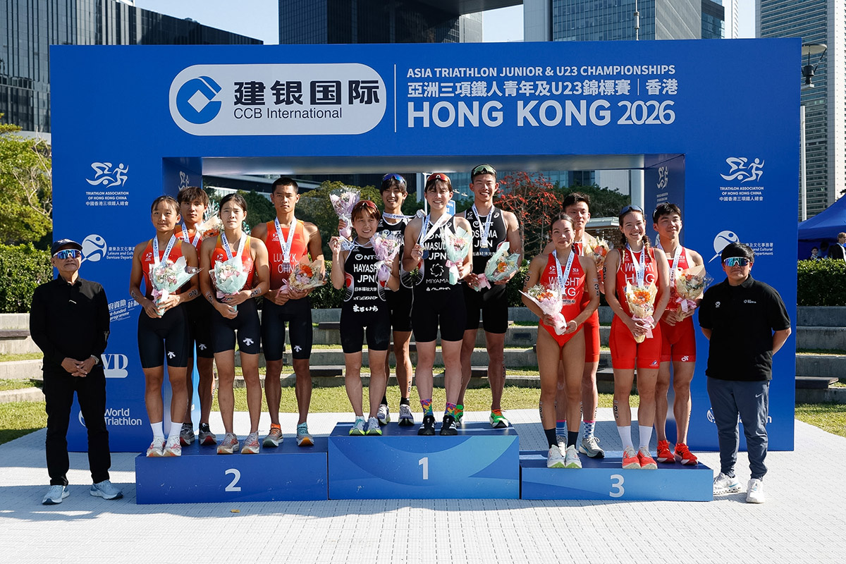 由建銀國際冠名贊助、中國香港三項鐵人總會主辦的建銀國際亞洲三項鐵人青年及U23錦標賽 - 香港 2026,今日(16日)於灣仔中環海濱續演,賽事包括本地分齡賽及混合接力精英組賽事,港隊贏得銅牌。
