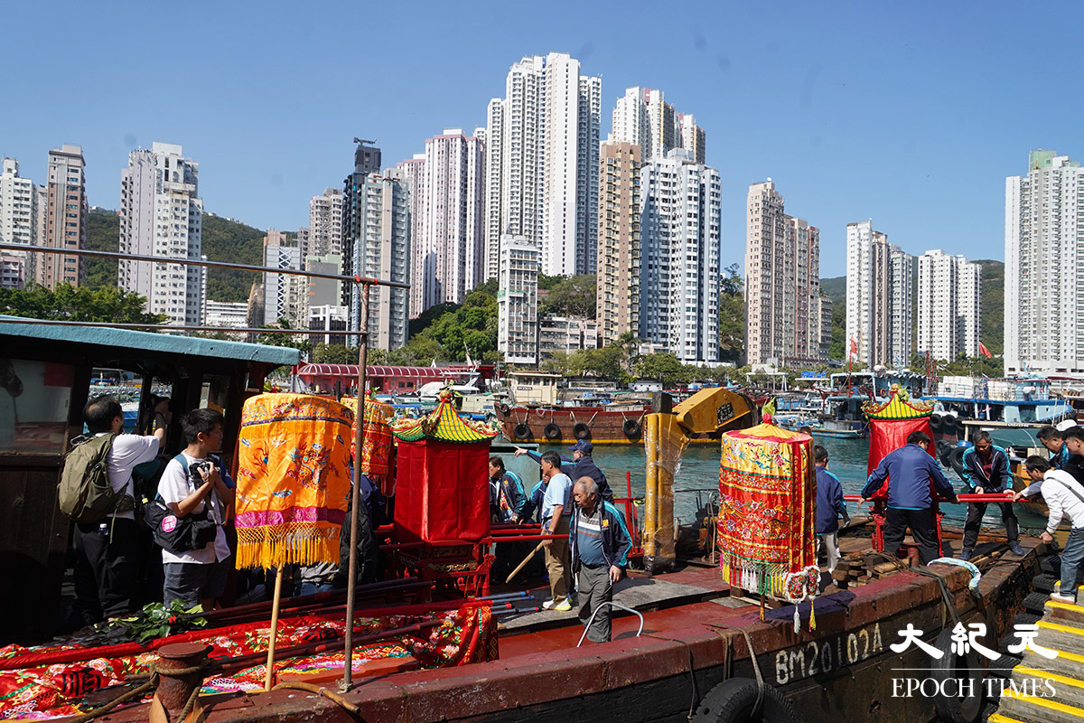 鴨脷洲洪聖傳統文化節今日(15日)開始。 啟動儀式在下午開始,坊眾會的接神隊伍,以神轎請出觀音、天后、北帝、土地等神像到洪聖廟,並舉行海上巡遊。