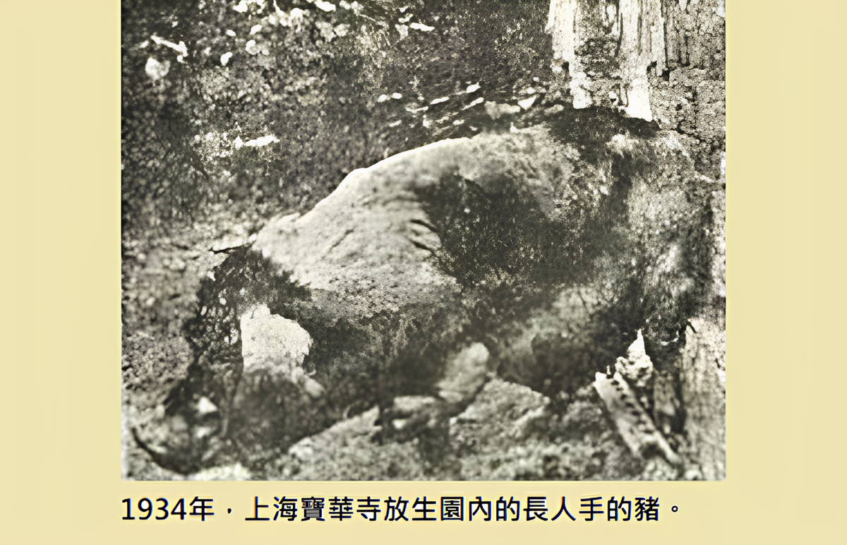 百年前,1923年,在上海發生一宗「人畜輪迴轉世」事件轟動一時。經過了十一年,到了1934年,有位狄子平先生在上海寶華寺的園內還看到那一隻長著人手的豬,就請上海「鏡華照相館」拍攝了一張「長人手的豬」的照片,同時附上親自寫的一篇短文「人畜輪迴之鐵證」勸善。此事件和照片被廣為傳播報道、擴散,成為人畜輪迴的鐵證。