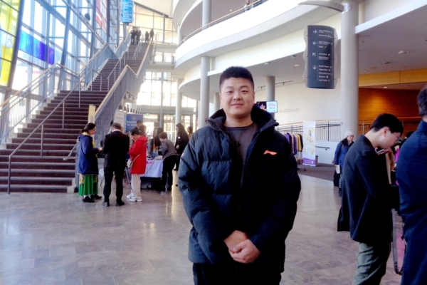 楊俊來加拿大兩年,3月14日下午,他和朋友一起觀賞了神韻的演出。