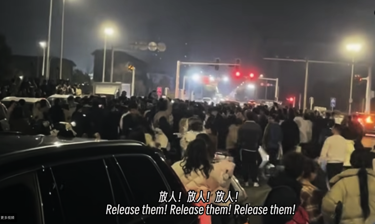 現場片段顯示,道路兩側停著多輛警車,大量警察和特警在周邊戒備並實施清場。清場過程中,警方帶走了數名參與維權的居民。拘捕行動迅速引發現場抗議群眾情緒升溫。