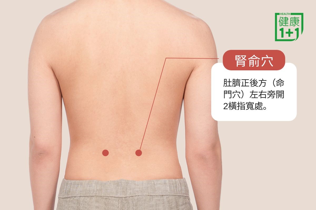 腎俞穴:位於第2腰椎棘突下,旁開兩指(食指中指)寬。