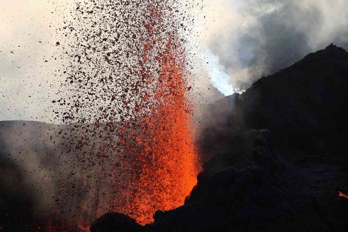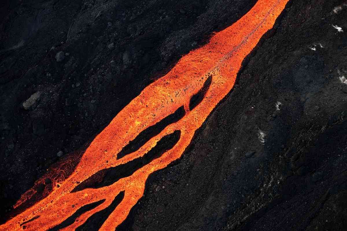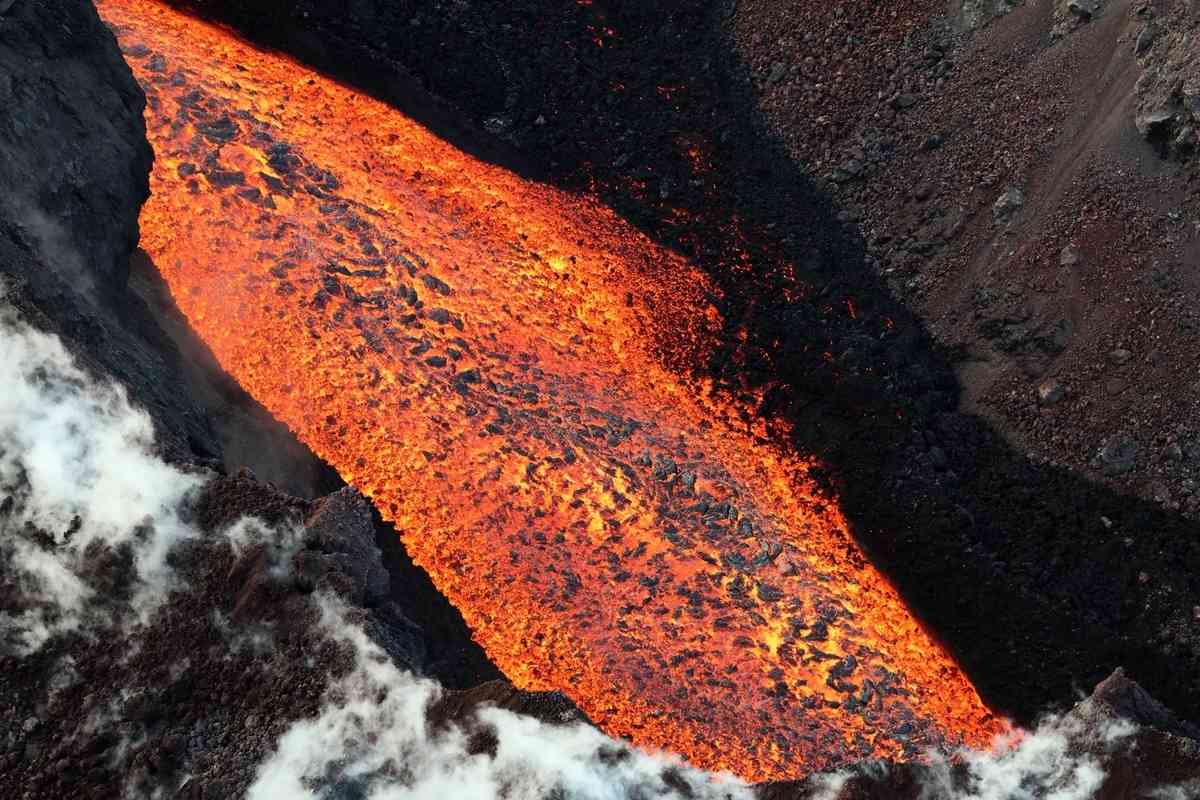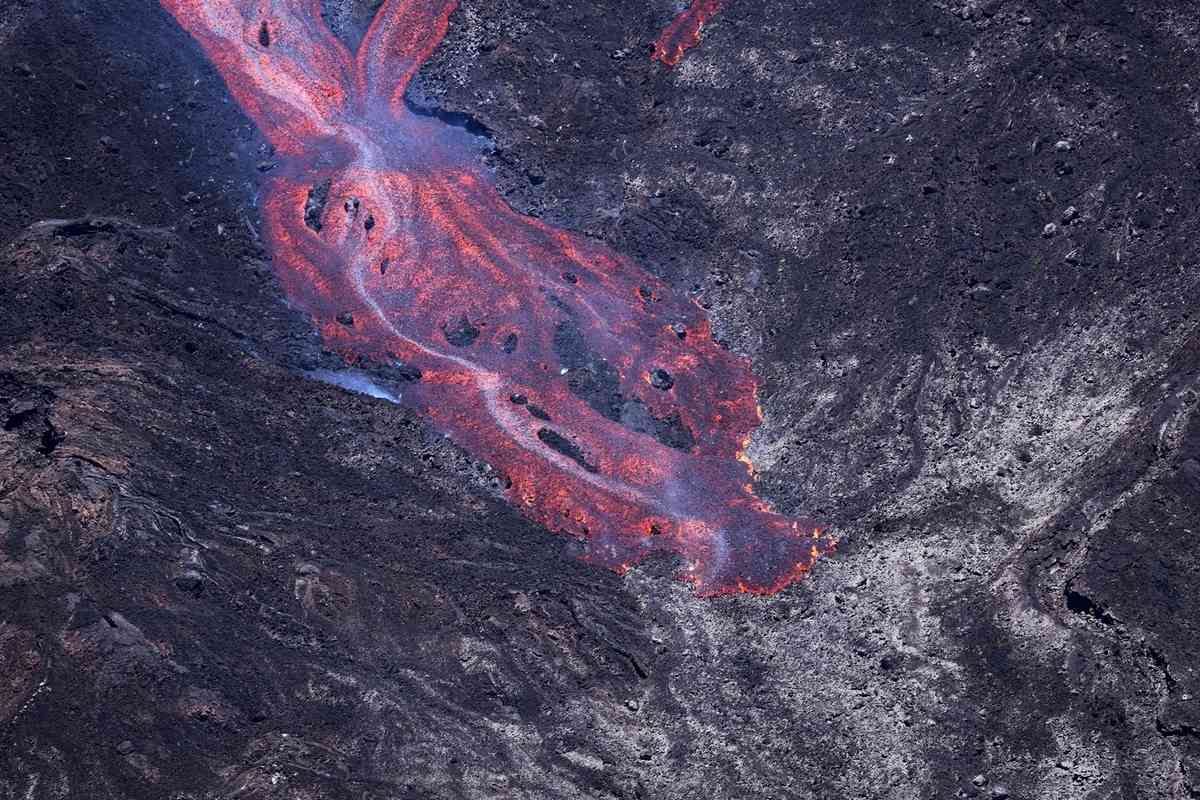 2026年2月13日,在法屬留尼汪島航拍的富爾奈斯火山噴發出的岩漿。(Emmanuelle Pays/Hans Lucas/AFP via Getty Images)