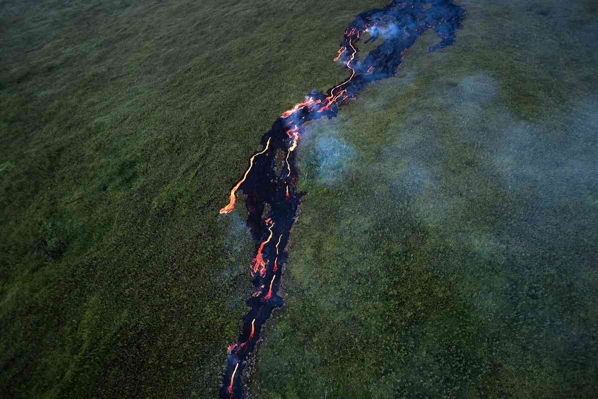 富爾奈斯火山於2月13日噴發後,形成15米高的紅色「熔岩噴泉」。現場畫面顯示,滾燙的橙色岩漿從火山噴出後,順著斜坡緩緩向東流淌,如同一條「火之河」,同時冒出濃濃的煙霧,為地表帶來了獨特而驚心動魄的景象。