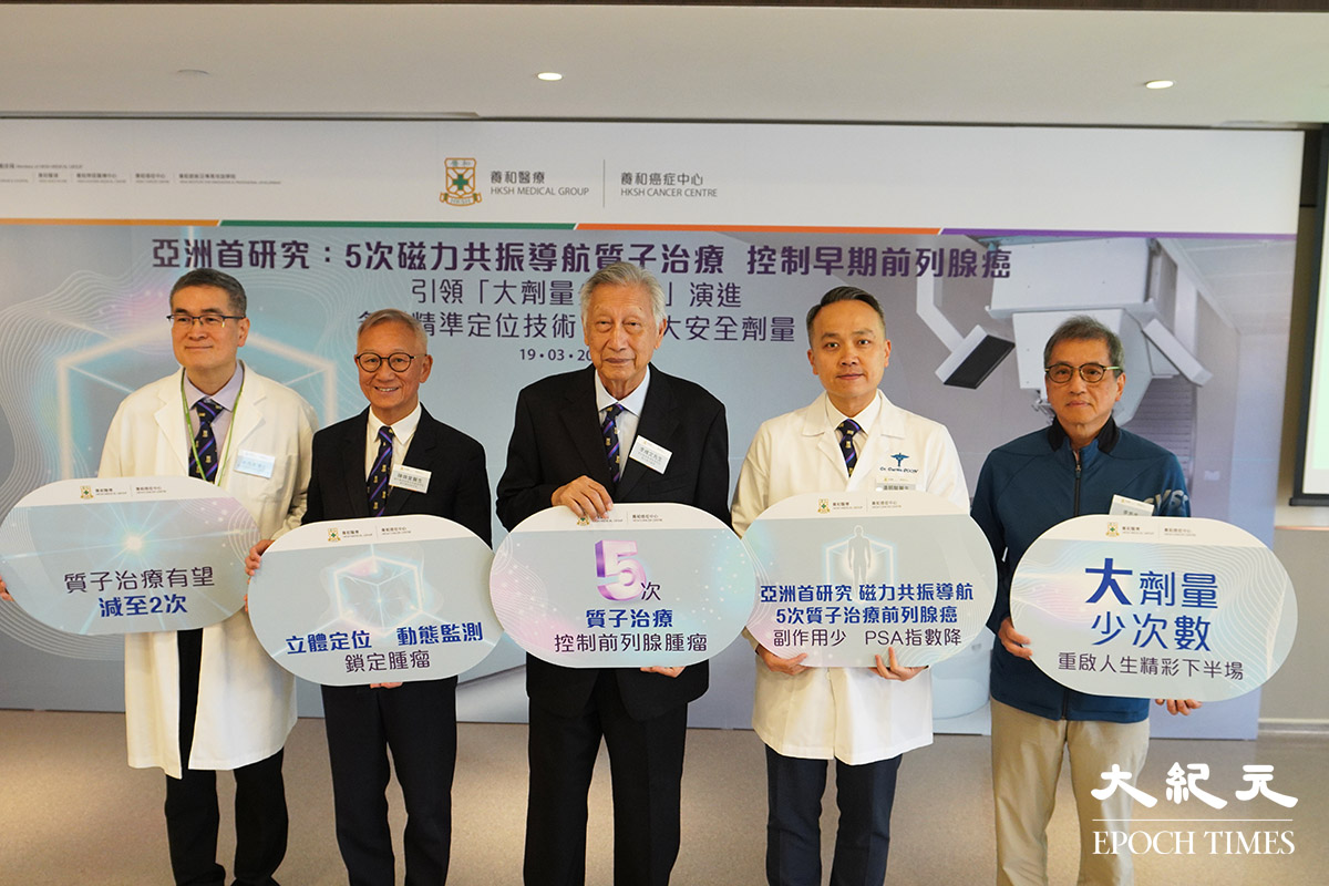 傳統質子治療前列腺癌一般需約30次療程,為期8至9星期。養和癌症中心於2023年啟用質子治療服務,結合定位技術實現「大劑量少次數」,針對早期前列腺癌將療程減至5次,為期2至3星期。研究團隊指,質子射線高度集中、到位釋放,對附近重要器官如膀胱、腸道影響輕微,有助提升患者生活質素。