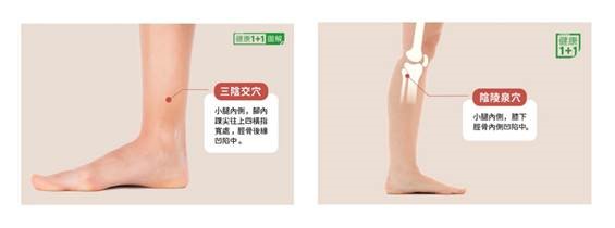 陰陵泉穴:位於小腿內側,膝下脛骨內側凹陷中。