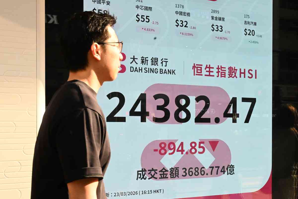 美股三大指數上周五全跌,而隨著中東戰局加劇、油價高企,亞股今(23日)下挫,日股降3.5%、韓股插6.5%,中港股顯著低收。恒指今早低開488點,盤中低位曾狂跌1,073點,收市報24,382點,挫894點(即跌3.5%),成交額3,687億。國指跌3.1%、科指走低3.3%。