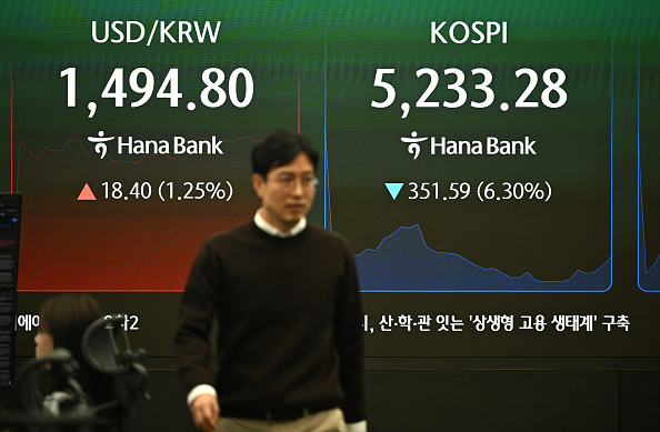 中東緊張局勢升溫,導致韓國股市基準股價指數Kospi周一(3月23日)一度重挫6.4%,創下自3月9日以來最大跌幅;韓圜兌美元匯率一度下挫0.5%,至1,512.30韓圜,寫下2009年3月以來最低點。