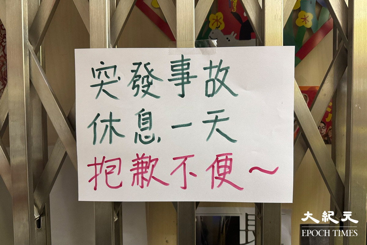 「一拳書館」的鐵閘張貼告示寫有「突發事故 休息一天 抱歉不便~」。@