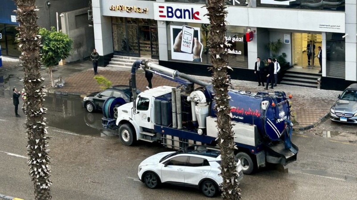 位於新開羅的高級住商區「塔加莫」(Tagamoa)馬路,因惡劣天氣導致嚴重積水, 車輪都泡在水中。開羅地區最低氣溫也降到攝氏11度。往年同期平均最低氣溫則為13至15度。