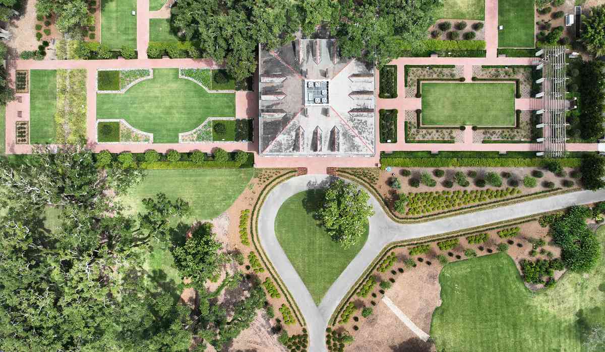 位於路易斯安那州南部、佔地25英畝的橡樹巷莊園(Oak Alley Plantation),建於南北戰爭之前,其獨特之處在於與大自然完美交融的景觀,莊園後方奔湧的密西西比河僅是其中一景。(譯註)最引人注目的還要數那條長長的林蔭步道——兩列巨型南方活橡樹(southern live oak tree,即維珍尼亞櫟樹)自18世紀便在此列隊而立。大宅的東西兩側是廣闊的園藝景觀花園。