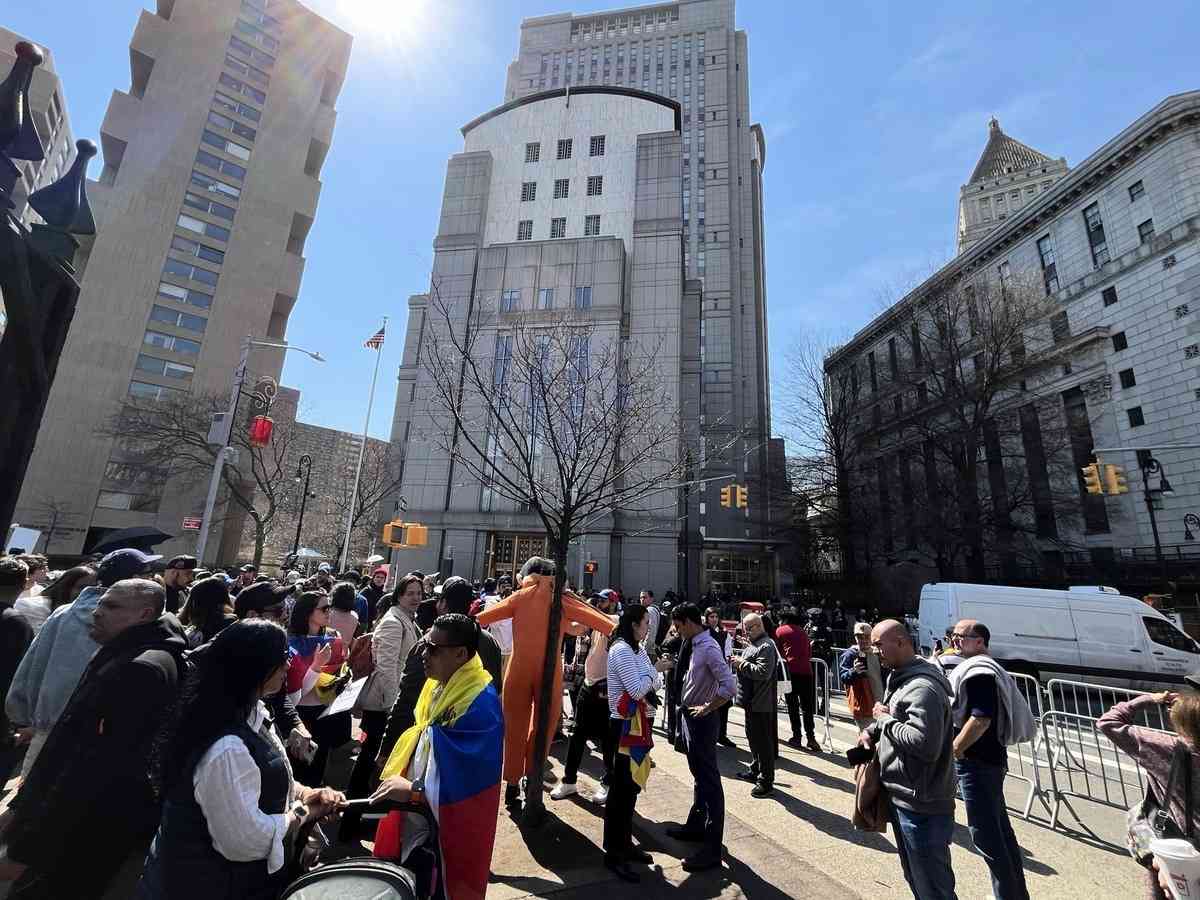 當天法庭的安保很嚴格,馬杜羅的大批支持者和反對者在警察的注視下,在法庭外面舉行了嘈雜的示威。#
