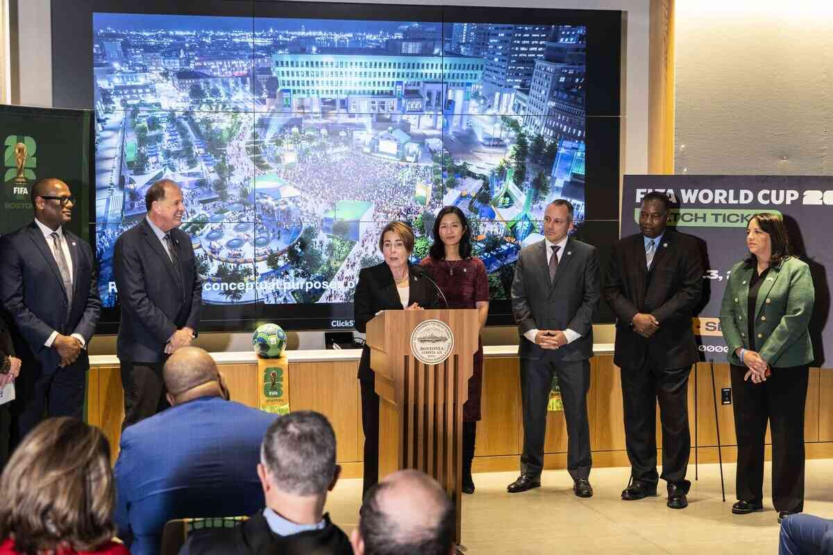 3月25日,州長希莉(Maura Healey)在弗萊明罕(Framingham)的麻州警察局統合中心舉辦記者會,報告了世界盃籌備工作的計劃和進展,包括結合地方、州和聯邦的資源,確保賽事期間的交通運輸、人群管理、現場保安、網絡安全、公共衛生、緊急響應等工作有序進行。
