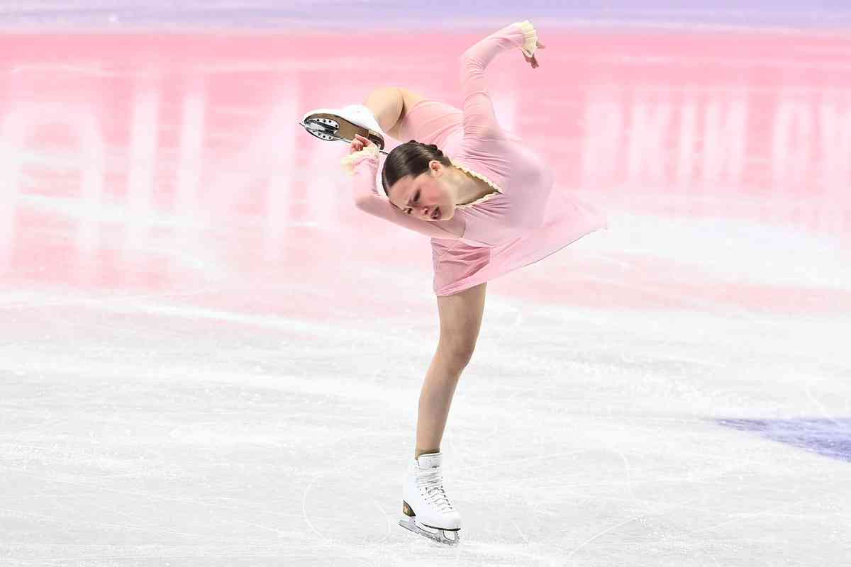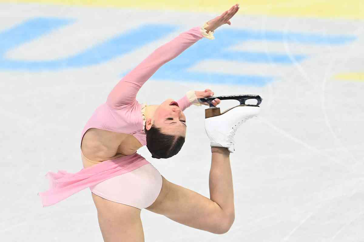 2026年3月27日,在捷克布拉格O2體育館,比利時選手平扎羅內參加女子單人滑自由滑決賽。(Michal Cizek/AFP via Getty Images)