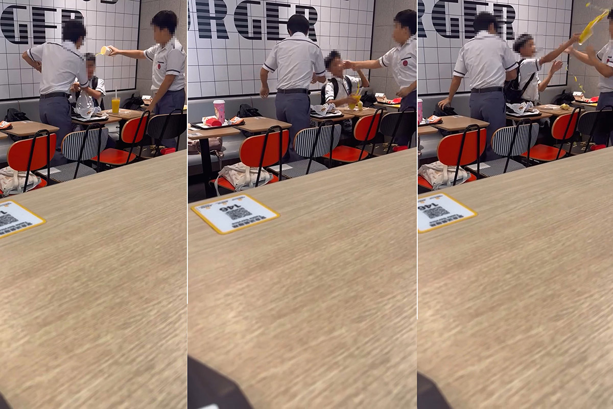 社交平台Threads今日(29日)流傳一段疑似校園欺凌的短片,引起網上廣泛討論。片段顯示,3名男學生在麥當勞分店內發生爭執,其中2人疑似聯手對另一名戴眼鏡的男學生施以掌摑及淋潑飲品。戴眼鏡男學生其後以飲品杯反擊,期間一名途人上前制止。