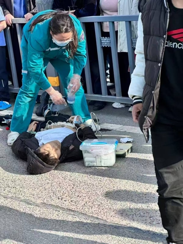 持刀男孩殺人後,仍然持刀站在現場,並開始打電話。後續有急救人員到場,但沒能將人救過來。公安到場後,給死者蓋上藍布。
