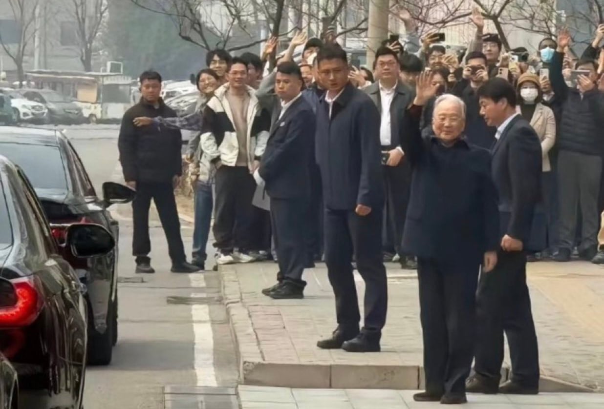 3月29日,海外社交平台X上流出影片顯示,83歲高齡的溫家寶滿頭白髮,身穿深色外套,走出中國科大的大樓,向外面等候的人群揮手致意。