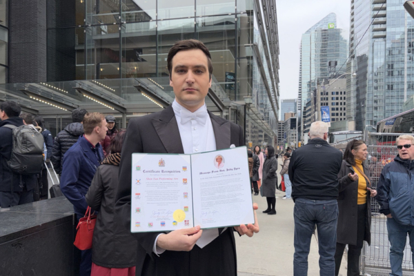 Baber議員向神韻的工作人員和藝術家們致敬,「歡迎你們來到加拿大。我們很遺憾今天無法在多倫多看到你們的演出,但希望你們繼續前行,為自己的文化、傳統和演出感到自豪。希望你們未來會更好。」