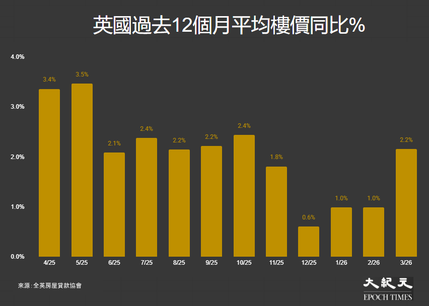該協會首席經濟師Robert Gardner表示:「樓價增長回升顯示市場在年初放緩後重拾動能。然而,中東局勢發展引發的全球能源價格急升,對全球經濟構成重大衝擊,令前景蒙上陰影。」