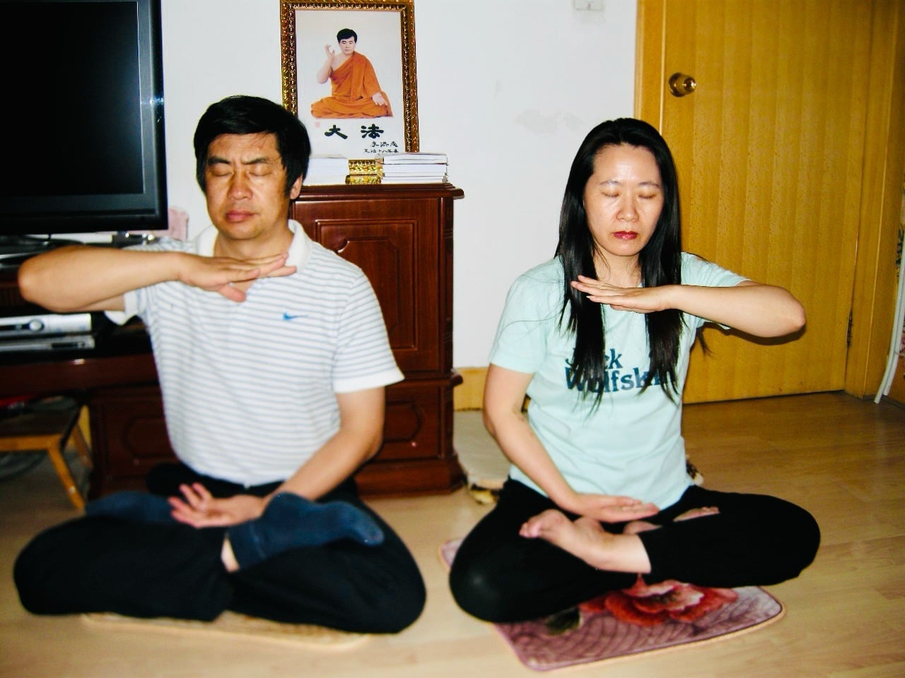 初春的一個清晨,微風拂面,清爽宜人。在洛杉磯蒙特利公園(Monterey Park),舒緩的煉功音樂響起,純靜祥和。鍾四平和太太陳新榮盤起雙腿,靜靜坐在草地上,隨著音樂進入修煉狀態。