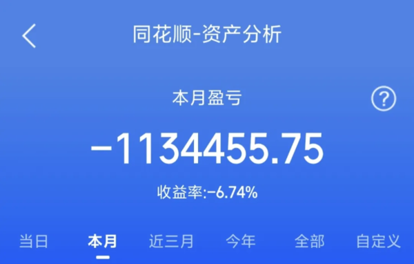所以3月份還能盈利的話,說明運氣非常好,3月份虧損7%以內屬於做得不錯了!3月份虧損12%以內屬於常態!3月份虧損超過12%,說明失控了。凱哥3月份虧了6.74%,虧損金額113萬,虧損創紀錄,虧掉三四線一套房。這是人生生涯裏面最大月度虧損!還是三成左右底倉的虧損幅度!」