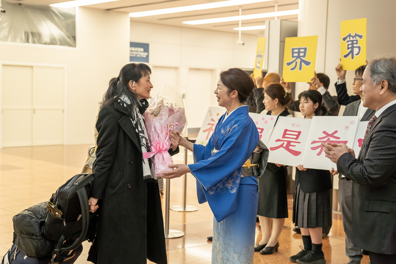 當神韻藝術家出現在接機大廳時,粉絲們齊呼「歡迎神韻光臨日本」「我們愛神韻」,並獻上鮮花,迎接神韻的到來。一名粉絲表示,「在櫻花盛開之時迎來神韻,感到無比高興,期待神韻在日本劃上一個圓滿的句號。」
