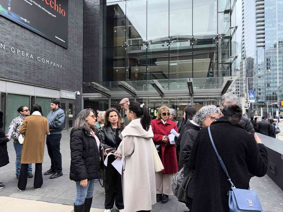 4月1日,一位年長的白人觀眾告訴《大紀元時報》記者,他早上已經看到演出被取消的通知,但還是和太太來到劇院。他說,「以防情況有變化,恢復演出後自己來不及趕過來。」再三與工作人員和劇院外神韻義工確認情況後,兩人才離開。