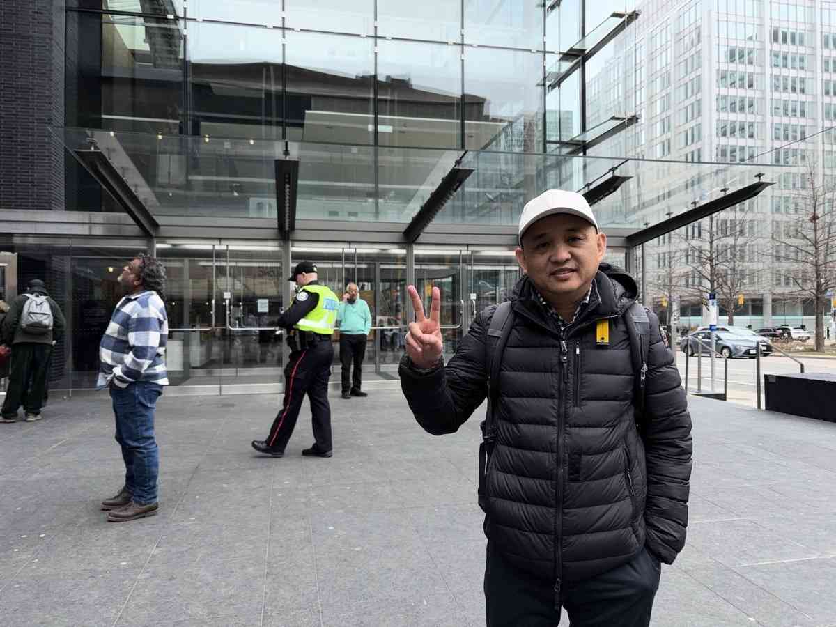 從中國大陸移民加拿大不久的Ashton早早買了4月1日下午場的神韻票,在上午收到取消演出的郵件後,他還是決定趕到劇院,支持神韻。