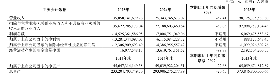 同時,歸屬於上市公司股東的淨利潤為虧損132.81億元,2024年同期為虧損61億;經營活動產生的現金流量淨額同比下滑99.88%;而2025年連續四個季度,公司利潤均出現虧損。
