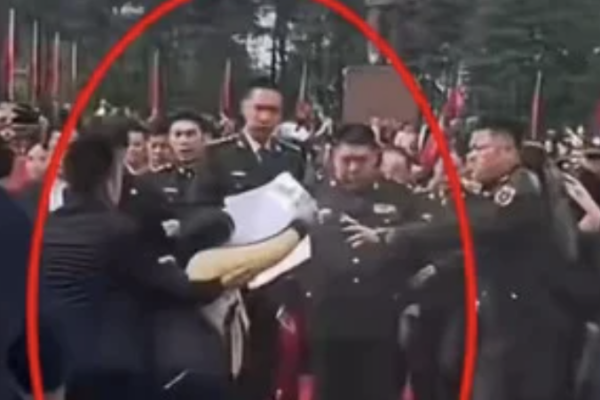 前中共黨魁毛澤東之孫毛新宇日前回湖南祭祖出狀況。一名女子手舉多張紙衝到毛新宇面前下跪,疑似是訪民訴冤,身著軍裝的隨從急忙將女子拖走。過程中毛新宇和身邊的兒子毛東東均沒有任何反應。