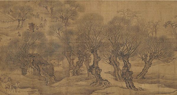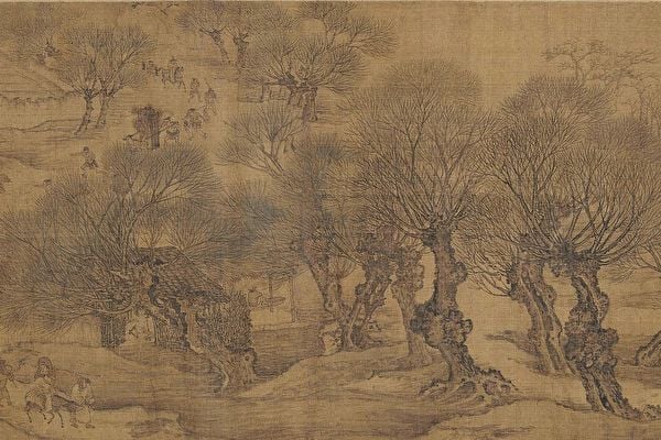 《清明上河圖》開卷就以驢子馱木炭點出清明時空,接著插著柳條雜花的轎子拜掃歸城,還有紙馬舖的大門面,都是畫家胸有成竹的經營安排,呈現了清明節民俗,這也與《東京夢華錄》的民俗記載一一相對應。這些以充滿生機的「柳」代言清明祭拜掃墓的場景,實在是畫家智慧的安排,展現對人生、對生命的寄望。@*#