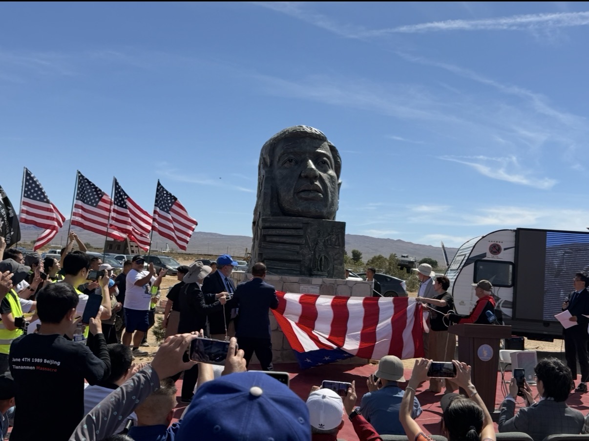 在二百多名與會者的期待中,多位嘉賓一同拉開了覆蓋在塑像上的美國國旗,包括:「美國優先政策研究所」(America First Policy Institute)中國政策主任陶智(Piero Tozzi),加州州長參選人、韓裔福音派牧師祈安(Ché Ahn),中國援助協會(ChinaAid Association)創辦人兼會長傅希秋,高智晟妻子耿和,美國前海軍陸戰隊「紫心勛章」獲得者羅麥諾(Eddie Romero)牧師,以及八九學生領袖、「人道中國」創辦人周鋒鎖等。