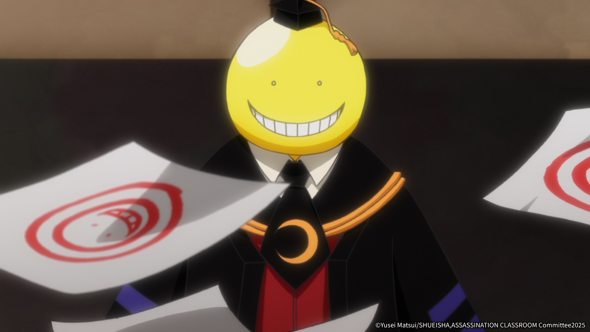 《暗殺教室》是個先天設定相當特別的作品,提供了闡述師生情誼、教育理念的作品中,通常不會有的眾多特殊元素。名字叫「殺老師」的班導外貌竟完全不像人類,反而像個能說人話的大型黃色章魚,儼然是個外星人。殺老師初登場時就揹上炸掉大半個月球,使滿月永遠消失的「戰績」,而且還預告1年後會炸掉地球,可說是以罪惡之姿奠定大眾對他的第一印象。