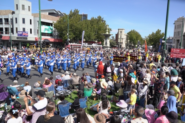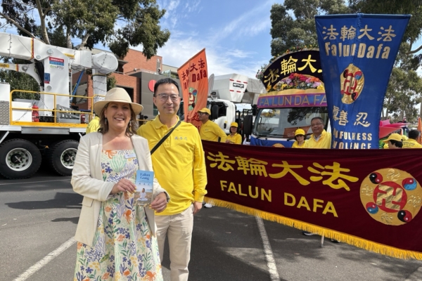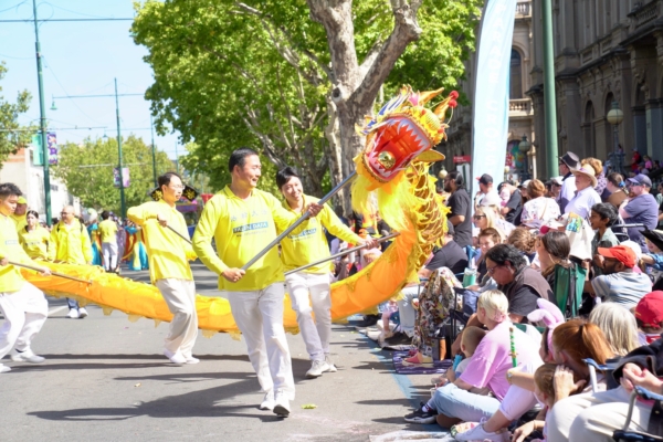 澳洲法輪大法團體今年再次受邀參加,為該傳統慶典帶來獨特的傳統東方文化韻味,並成為遊行中的一大亮點。班迪哥市市長Cr Thomas Prince和副市長Cr Karen Corr親自歡迎法輪大法團體的到來,盛讚學員們「了不起」。