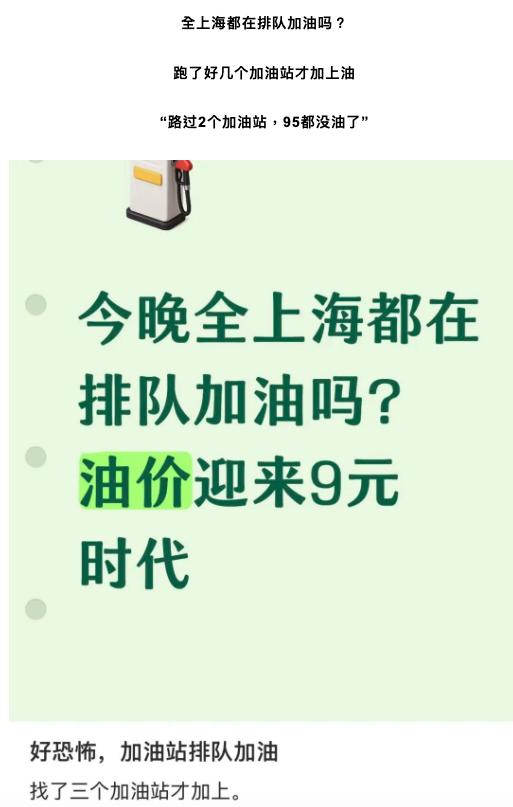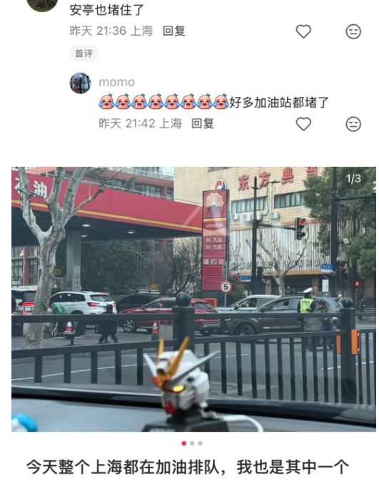 還有網民感嘆,全上海都在排隊加油嗎?跑了好幾個加油站才加上油。「路過2個加油站,95都沒油了。」