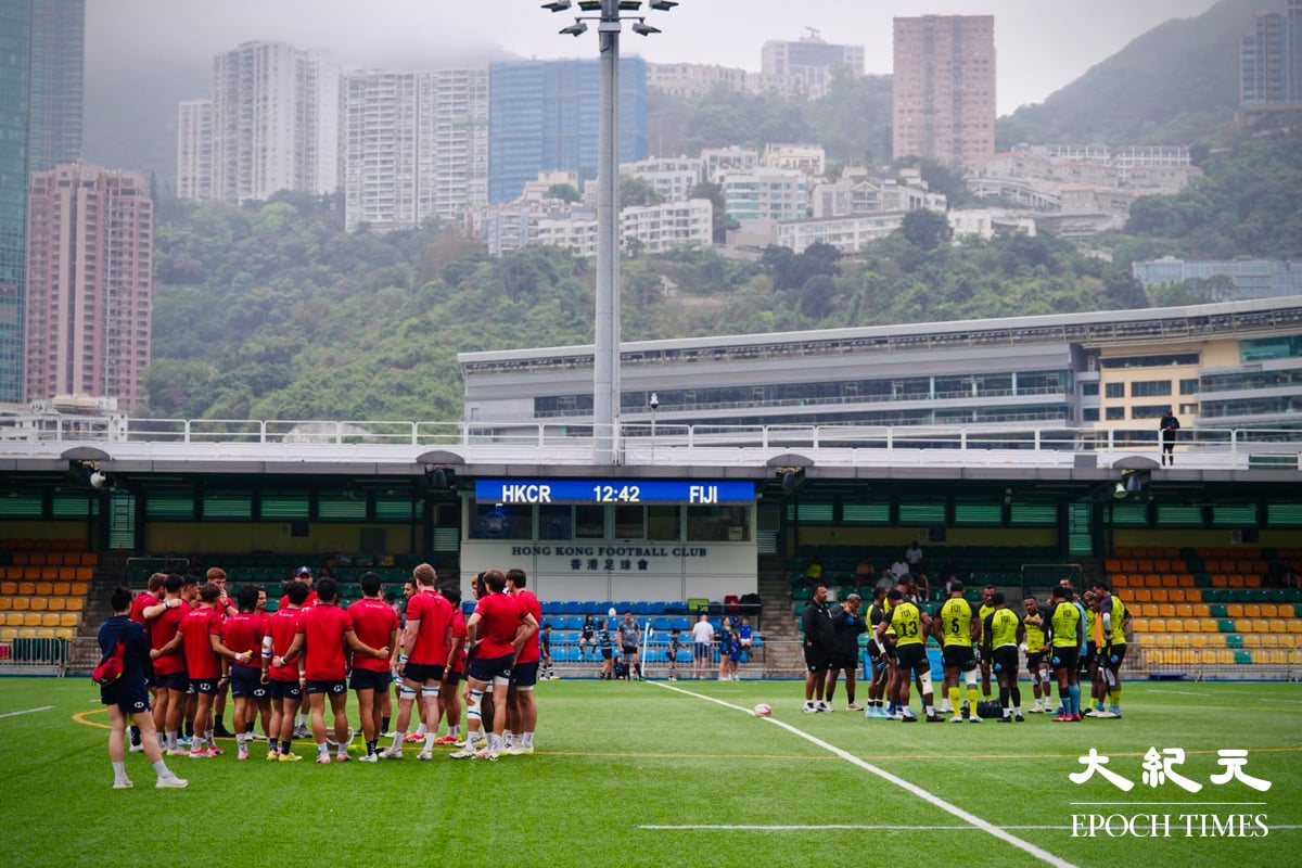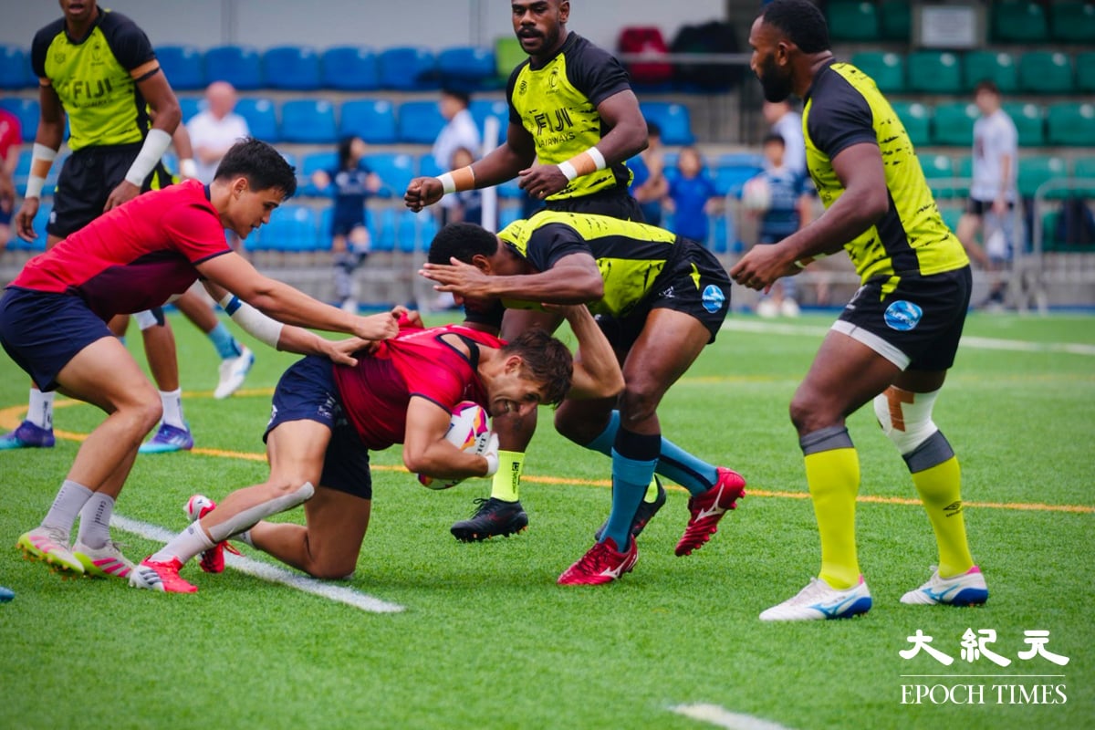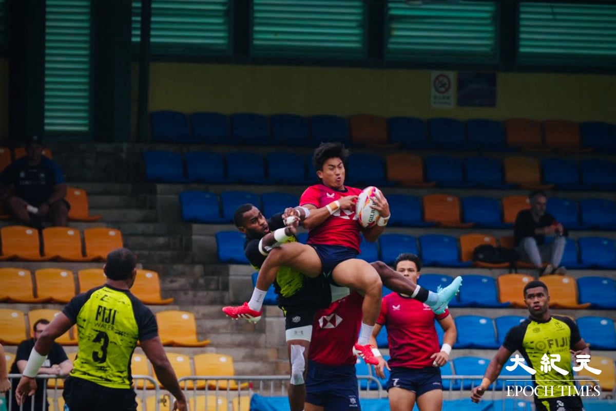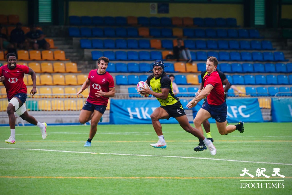 斐濟隊現時在世界系列賽排名第2,今日賽事原定進行4節,後應雙方要求加操至5節。港隊在賽事中先開紀錄之餘,更有4人成功「達陣」,包括兩度得分的拜恩菲臘斯,以及拜恩塞巴和英泰混血小將Matthew Rickard。