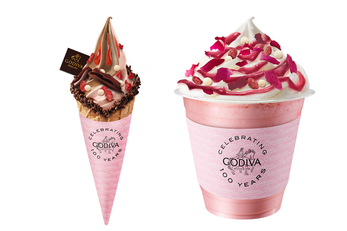 100周年限定軟雪糕與飲品系列以GODIVA經典可可風味為基調,融入覆盆子作為主題食材,在踏入春夏之際,帶來3款清新甜點:覆盆子黑巧克力雙重口味軟雪糕、覆盆子白巧克力味軟雪糕和覆盆子白巧克力味奶昔。