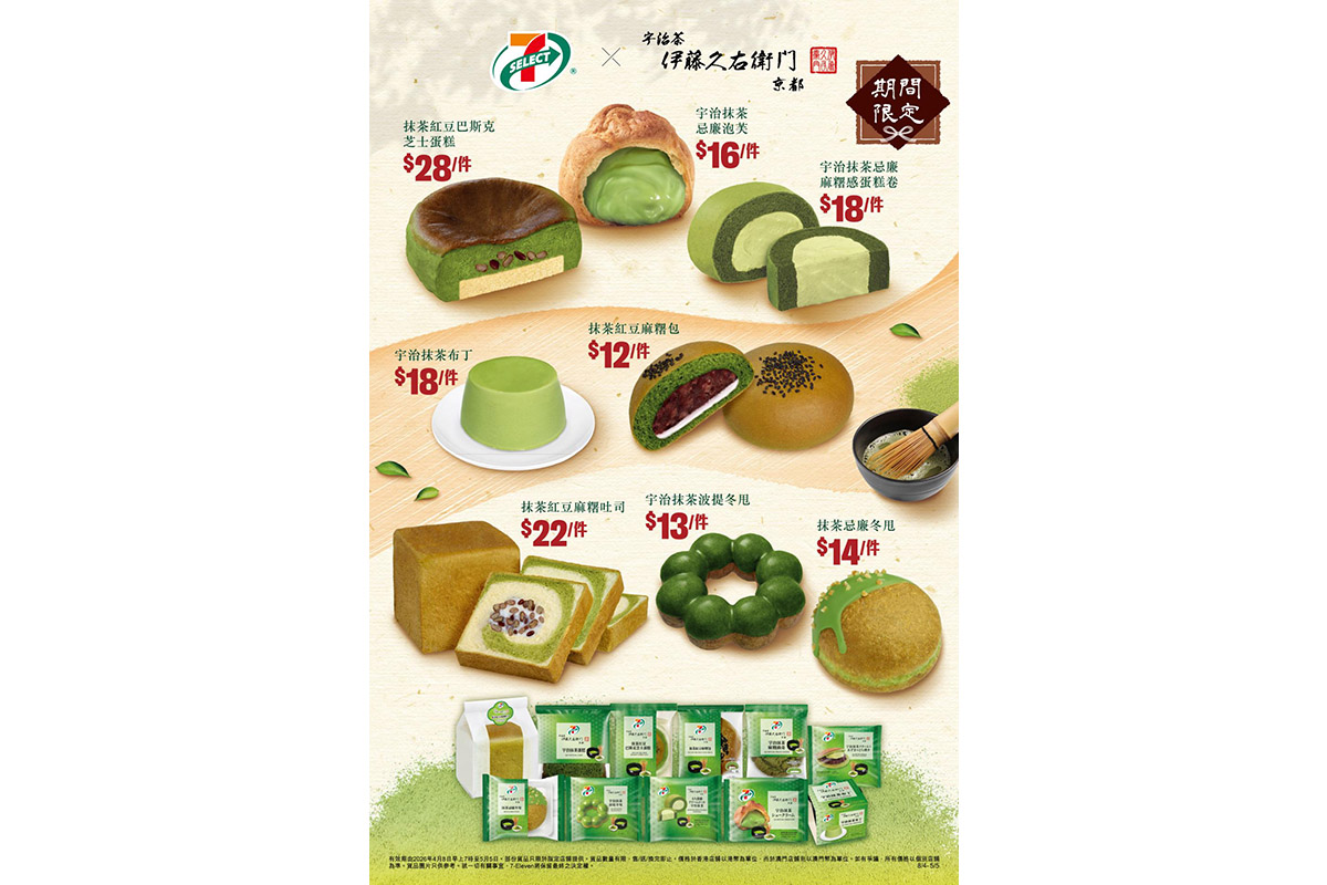 7-Eleven自家品牌7-SELECT與日本宇治抹茶名店——伊藤久右衛門今個春天再度合作,推出9款期間限定宇治抹茶甜品及烘焙食品,以及2款期間限定宇治抹茶甜品。