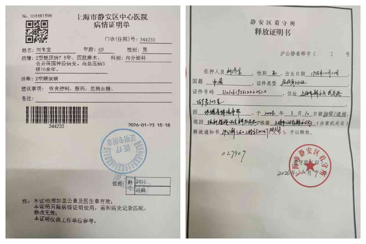 2026年中共兩會期間,上海訪民劉冬寶進京被遣返,回上海後遭刑事拘留一個月。劉冬寶患有糖尿病,併發多種疾病、高血壓三級,屬高危病人仍被拘留。上海訪民顧國平認為,當局的做法是違法行為,其草菅人命的做法應該受到國際的譴責。